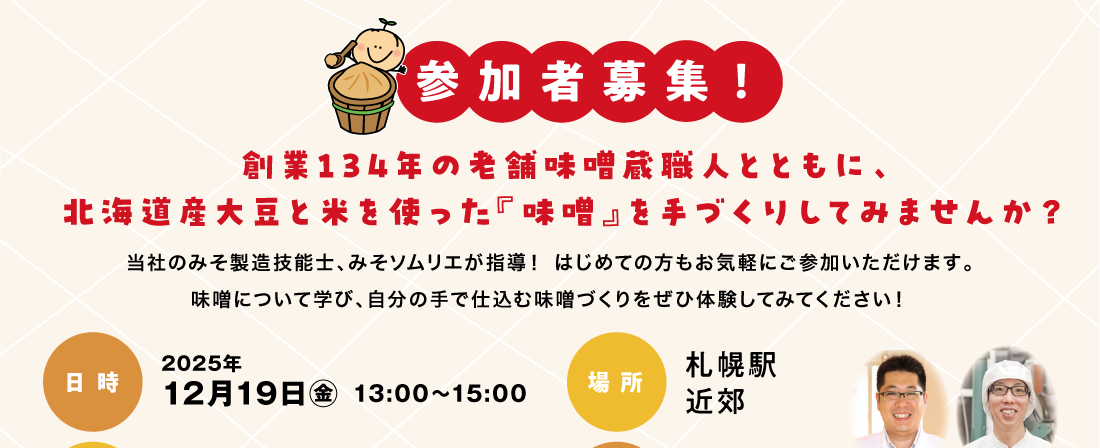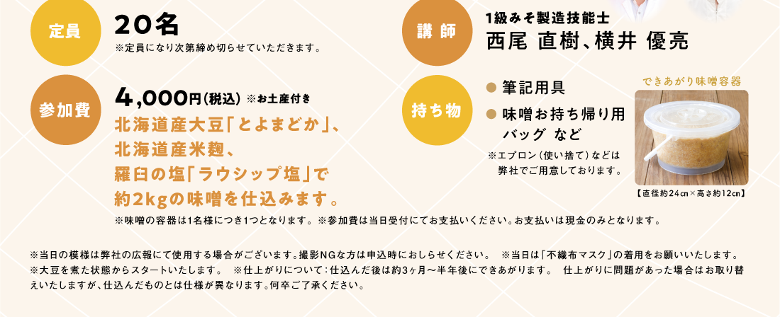 お味噌について学び、自分の手で仕込む味噌づくりを、ぜひ体験してみてください!