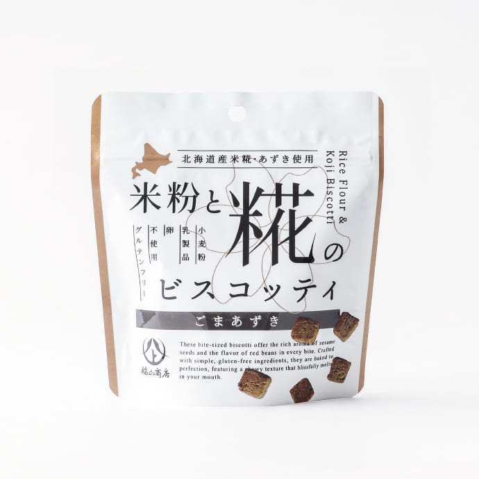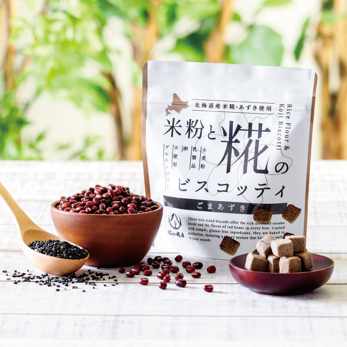 糀を熟知した職人が仕込む、弊社醸造蔵の「北海道産米糀」をブレンドした、少しかために焼き上げたキューブ型ビスコッティです。