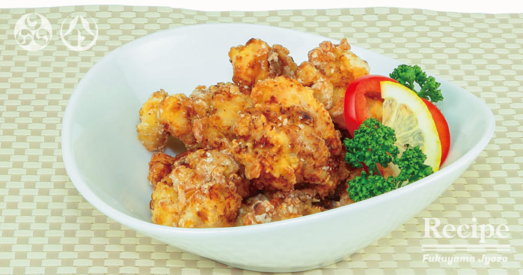 鶏肉の余分な水気をふき、片栗粉をまぶして、きつね色になるよう揚げたら、できあがりです。