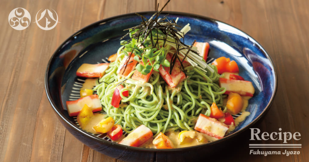 4. 器に茶そばを盛り、③のドレッシングをかけ、具材を乗せてできあがりです。