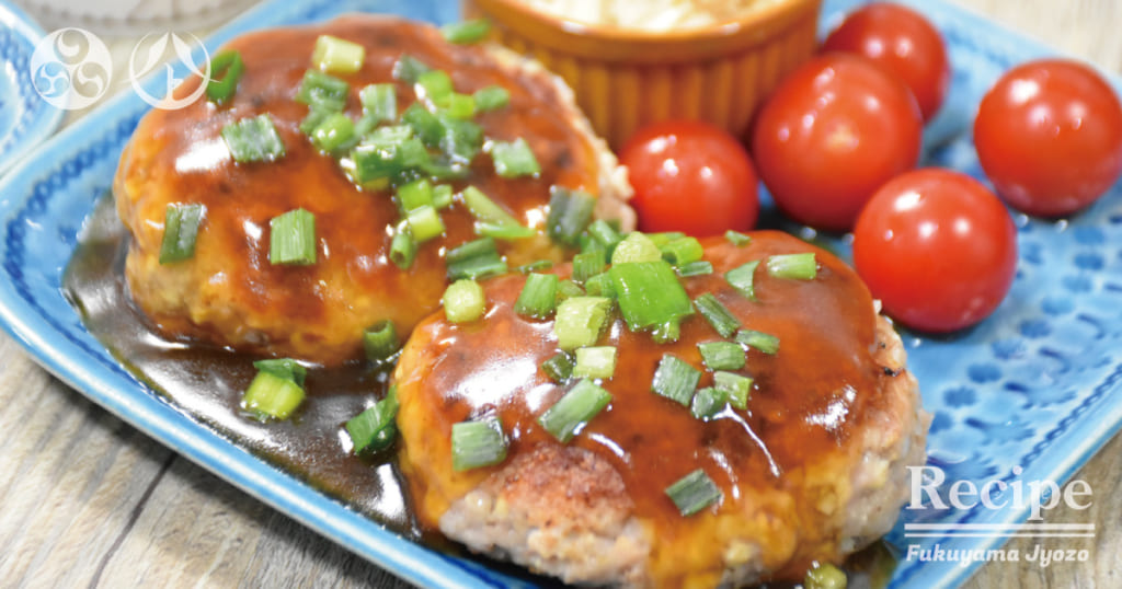 れんこんの食感がアクセントなヘルシーな豆腐ハンバーグです。