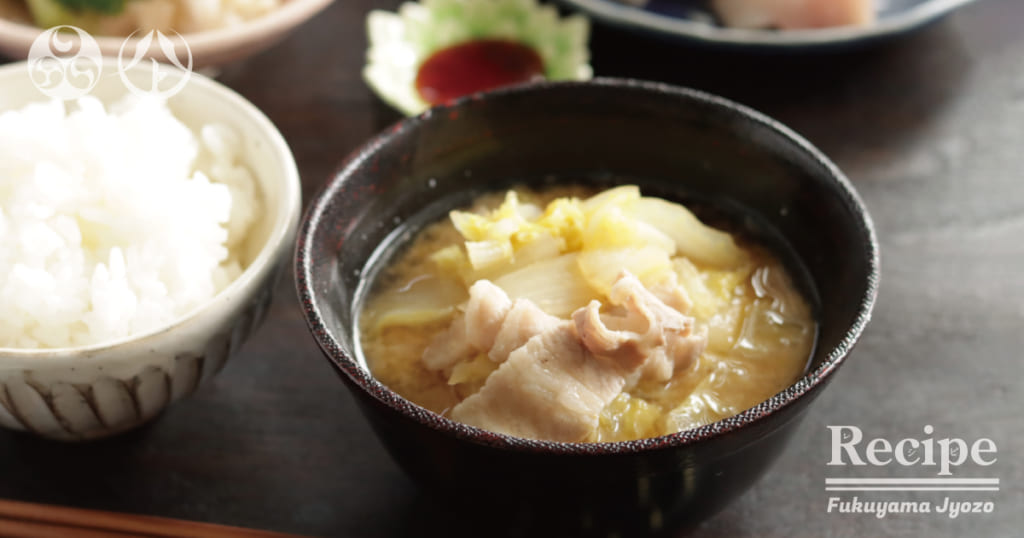 白菜と豚バラでやさしい甘みを感じるお味噌汁になりました。